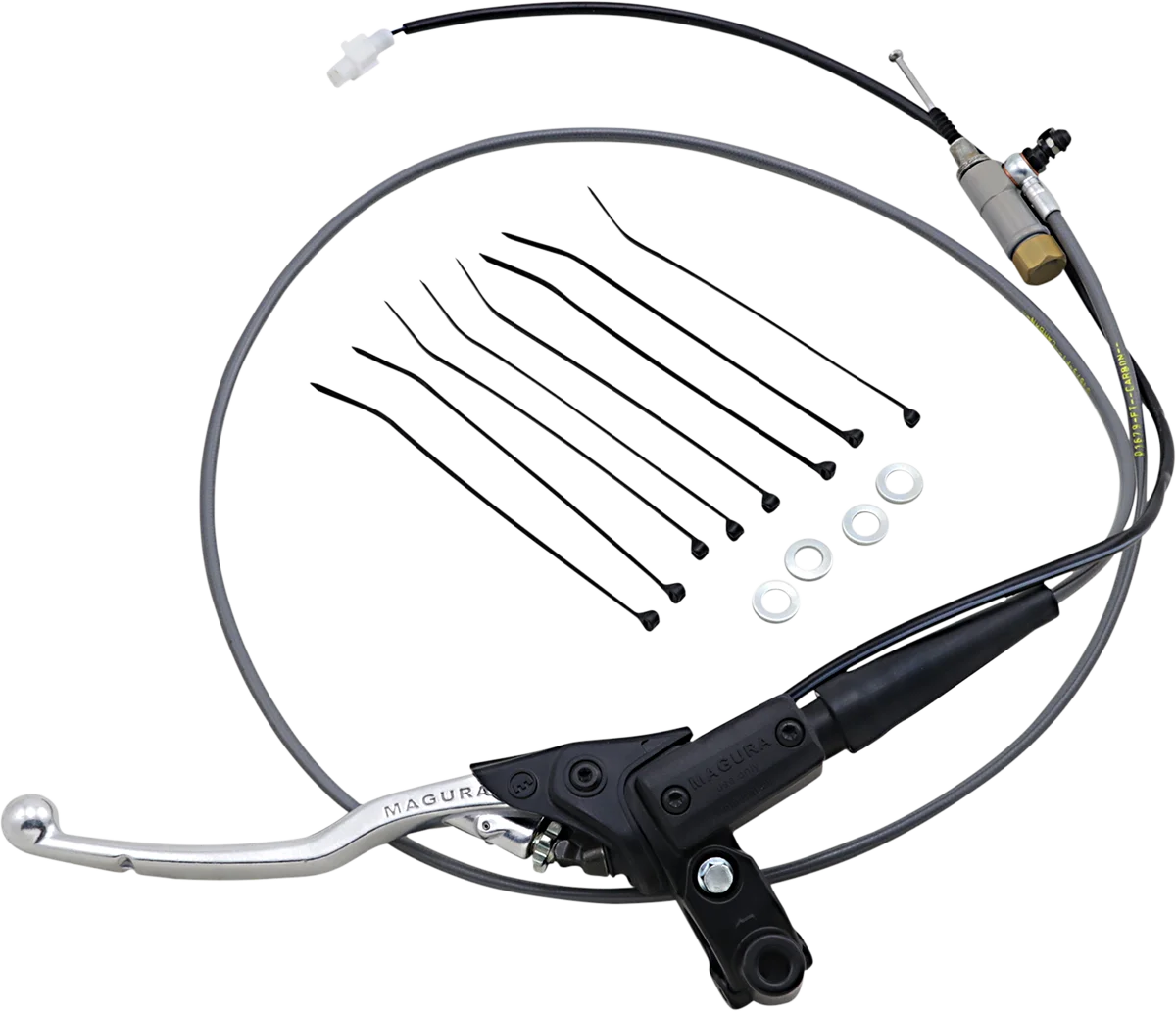 This system replaces the clutch lever and cable – with a small lightweight hydraulic system for improved clutch control. Up to 20% less clutch pull. No maintenance and self-adjusting. Smooth hydraulic feel with clear and consistent pressure point. Operates on mineral oil which doesn't draw moisture and won't harm paint or finish. Forged break-away lever blade with reach adjust is ready to mount. Clutch safety switch included.