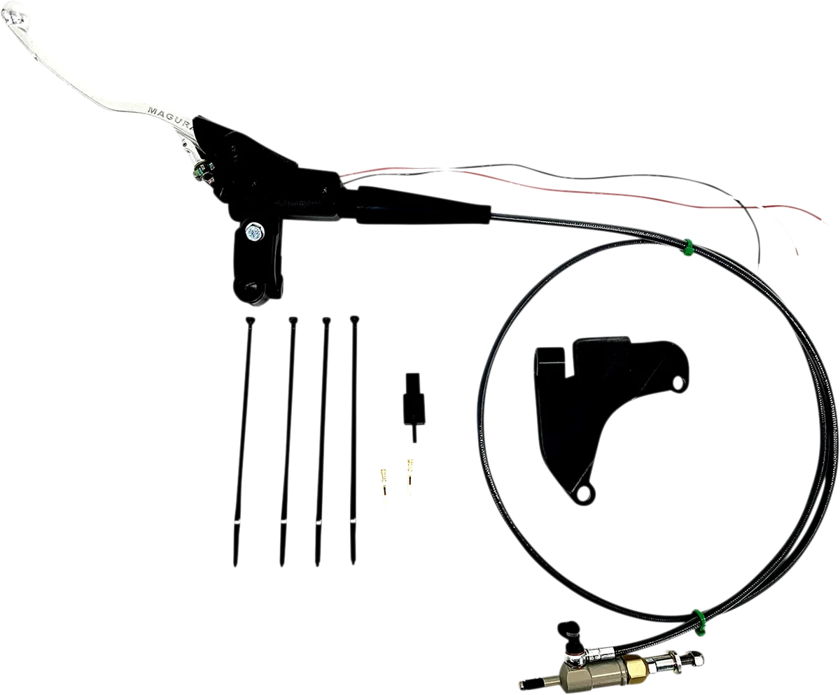 This system replaces the clutch lever and cable – with a small lightweight hydraulic system for improved clutch control. Up to 20% less clutch pull. No maintenance and self-adjusting. Smooth hydraulic feel with clear and consistent pressure point. Operates on mineral oil which doesn't draw moisture and won't harm paint or finish. Forged break-away lever blade with reach adjust is ready to mount. Clutch safety switch included.