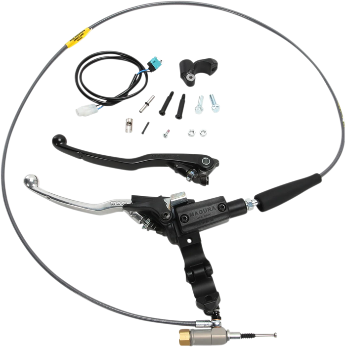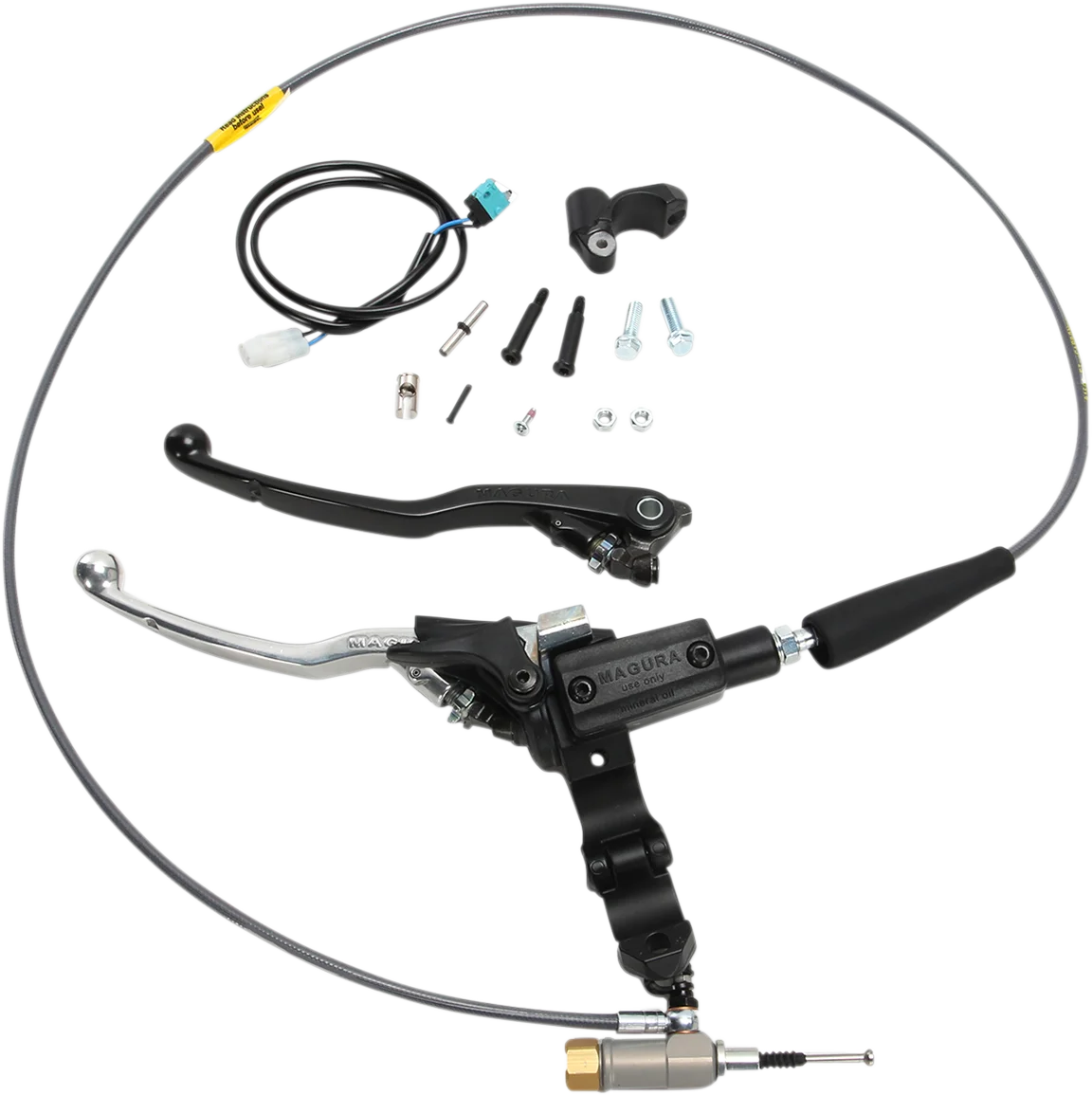 This system replaces the clutch lever and cable – with a small lightweight hydraulic system for improved clutch control. Up to 20% less clutch pull. No maintenance and self-adjusting. Smooth hydraulic feel with clear and consistent pressure point. Operates on mineral oil which doesn't draw moisture and won't harm paint or finish. Forged break-away lever blade with reach adjust is ready to mount. Clutch safety switch included.