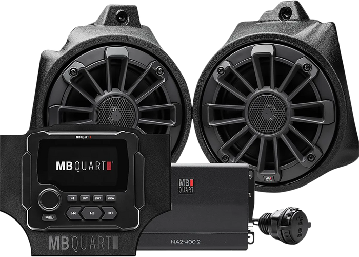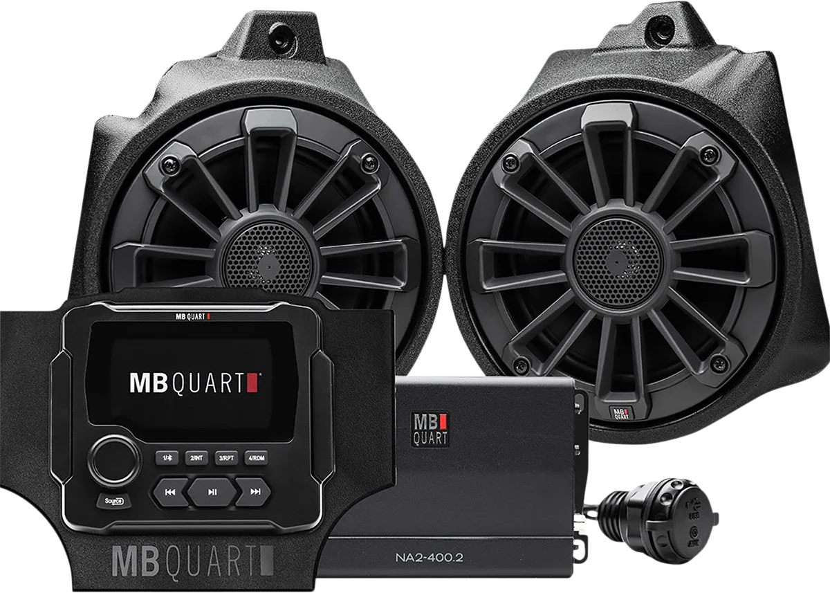 AM/FM bluetooth source unit with mounting panel. Quick pair immediately connects to the last device that was connected. Model specific speakers include a 1" titanium dome tweeter that will deliver natural sounding high frequency response, while producing high volume. Plug and play harness and waterproof connectors with pre-measured wires included.