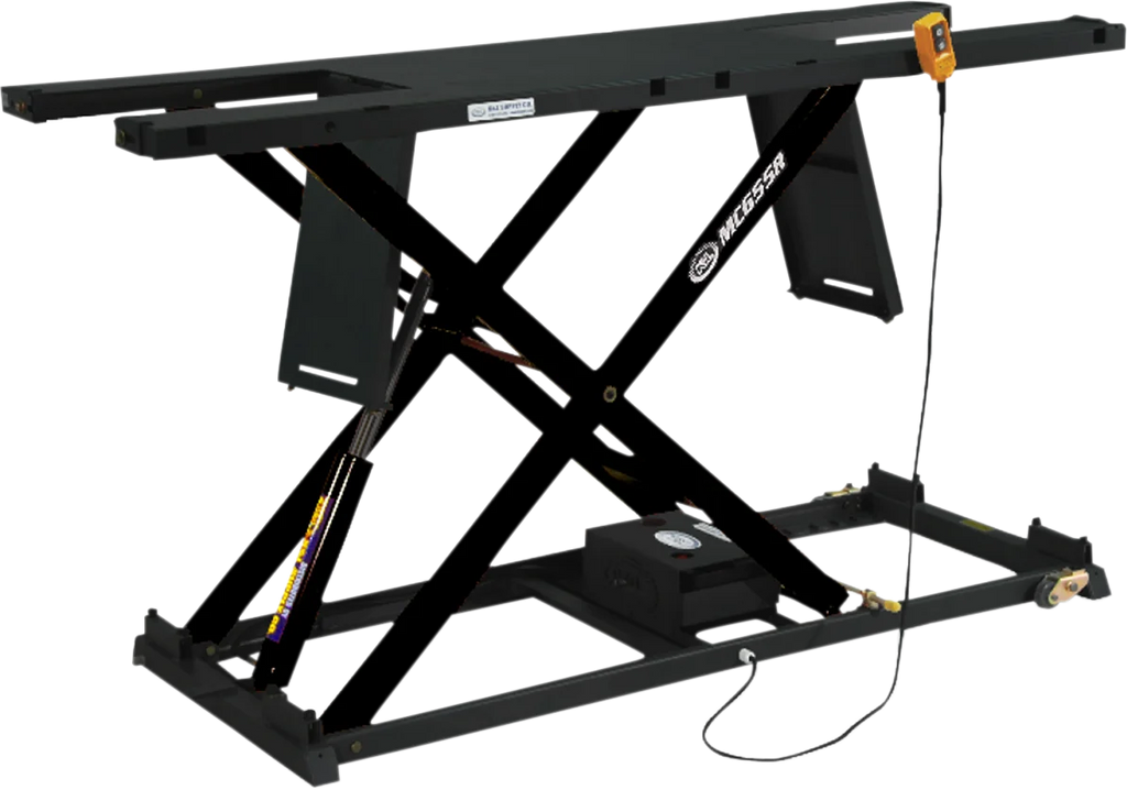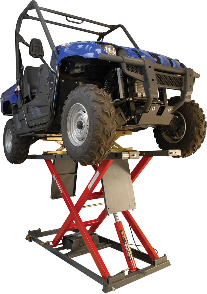 Loading ramp and hand-held remote control included. Five-position safety locking system for extra safety. Lowers to a minimum height of 7.5". Front and rear drop panels. One-ton capacity.