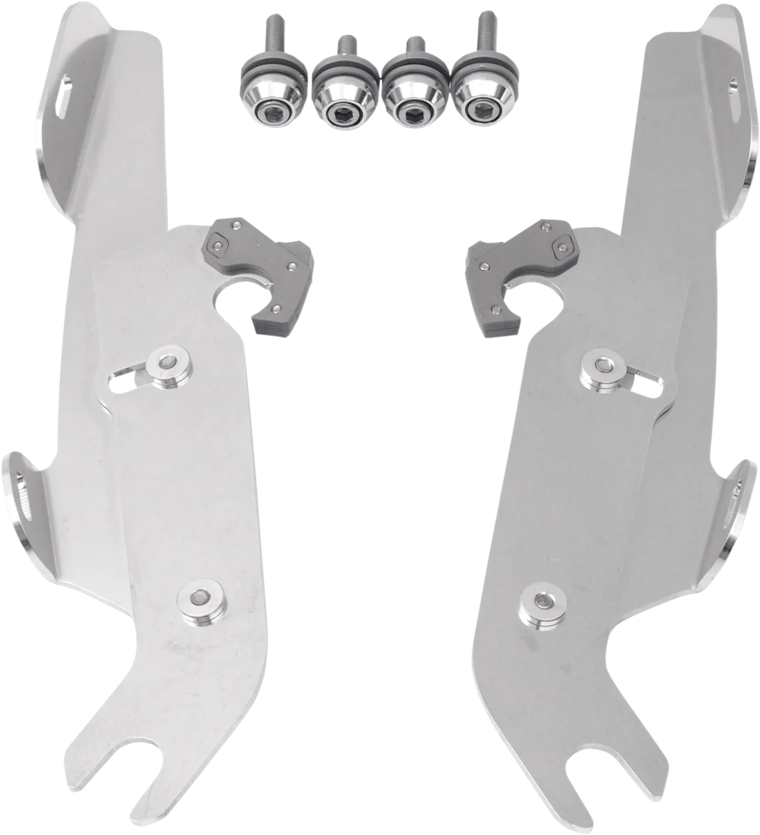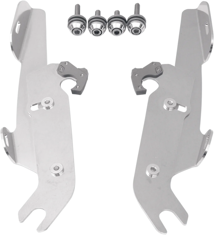 Angle Adjustable. Model specific no-hassle installation, then on-off without tools. A pair of glass-filled nylon latches lock it down until the spring loaded "Trigger-Locks" are intentionally disengaged. Made exclusively of electrocoated aluminum and stainless steel, with stainless steel fasteners. Anchoring hardware is the same for all windshields and fairings for each bike. Made in the U.S.A. - Made in Memphis!.