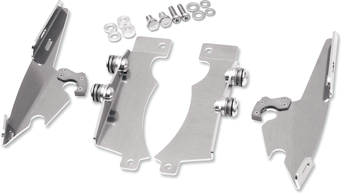 Angle Adjustable. Model specific no-hassle installation, then on-off without tools. A pair of glass-filled nylon latches lock it down until the spring loaded "Trigger-Locks" are intentionally disengaged. Made exclusively of electrocoated aluminum and stainless steel, with stainless steel fasteners. Anchoring hardware is the same for all windshields and fairings for each bike. Made in the U.S.A..