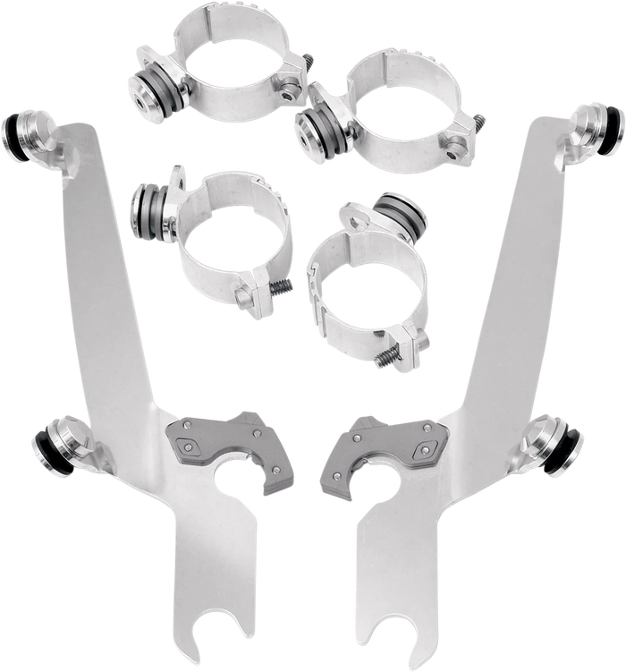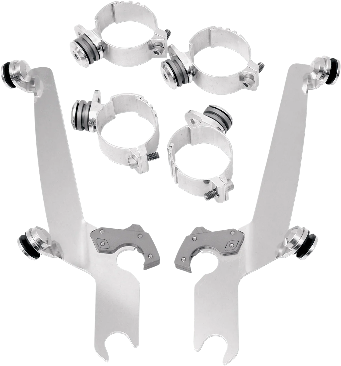 Gone are the days of fumbling with tools to remove your windshield. The revolutionary No-Tool Trigger-Lock hardware features an innovative system that allows you to quickly and easily remove your windshields without the use of any tools. A pair of latches lock the windshield down until the spring loaded "trigger locks" are intentionally disengaged, allowing the rider to remove the windshield. Hardware is fully adjustable to achieve just the right windshield angle. Kits are custom-fit to each style of bike for a truly no-hassle installation. Made in the U.S.A..