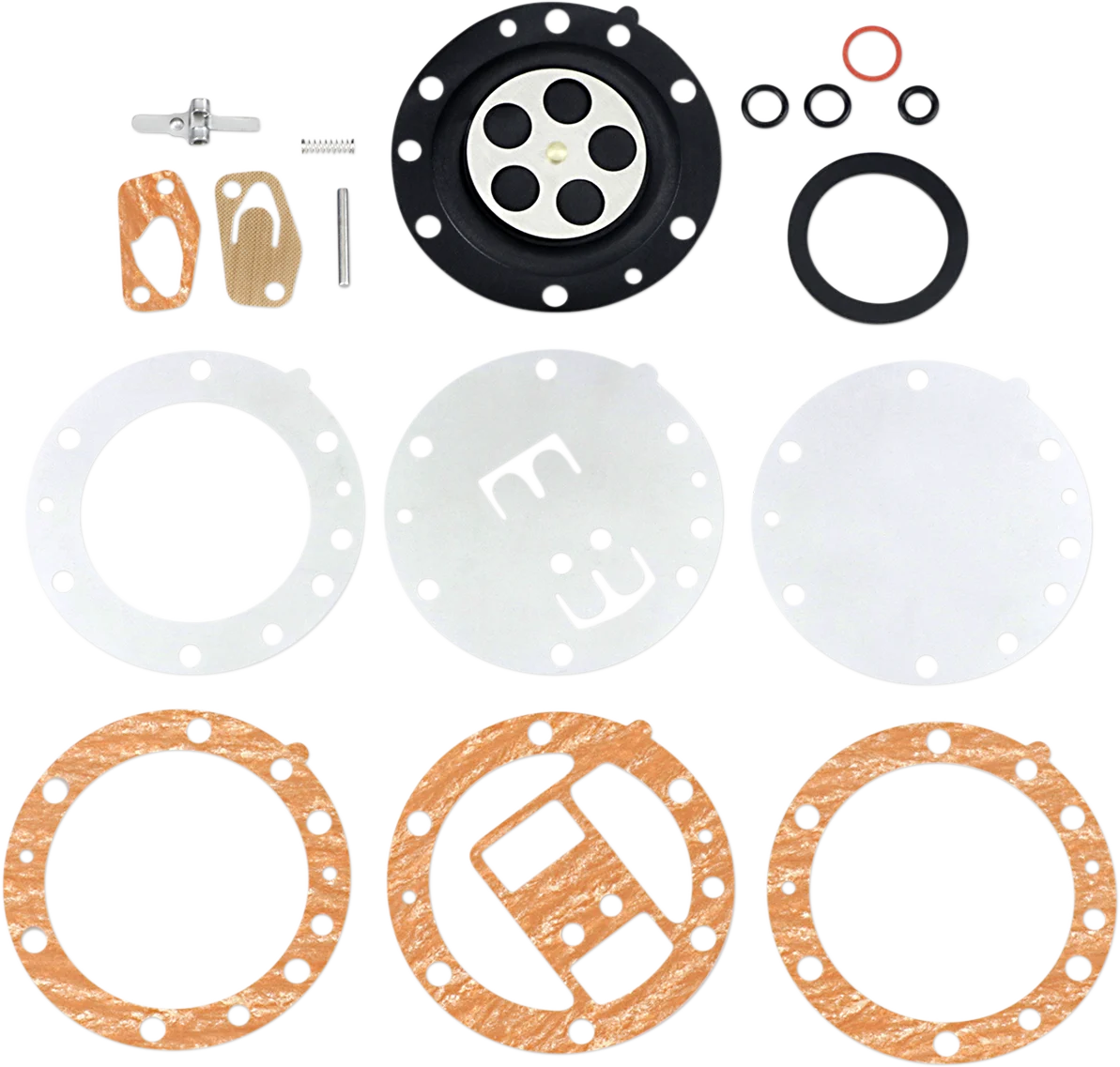 Diaphragm repair kit for all standard Mikuni BN series carburetors - six-screw pump cover.
