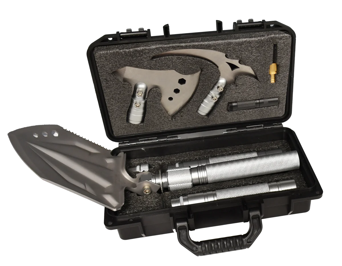 | Description_EXT | PRO TERRAIN SURVIVAL KIT all-in-one tool; a shovel, axe, hoe, pickaxe, tactical knife, and more. |