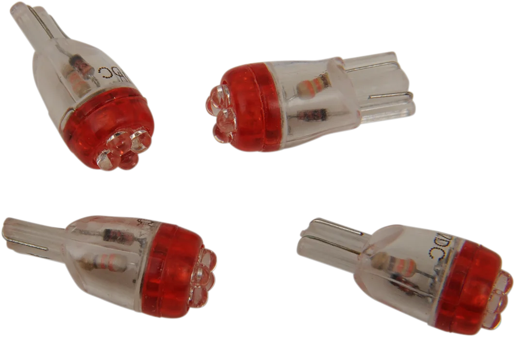Feature four LEDs in one socket. Replace existing wedge bulbs in gauges, marker lights and fender tip lights. 12V, .5W lights. Approximately 1.03" L x .445" D. Sold to dealers in packs of 4.