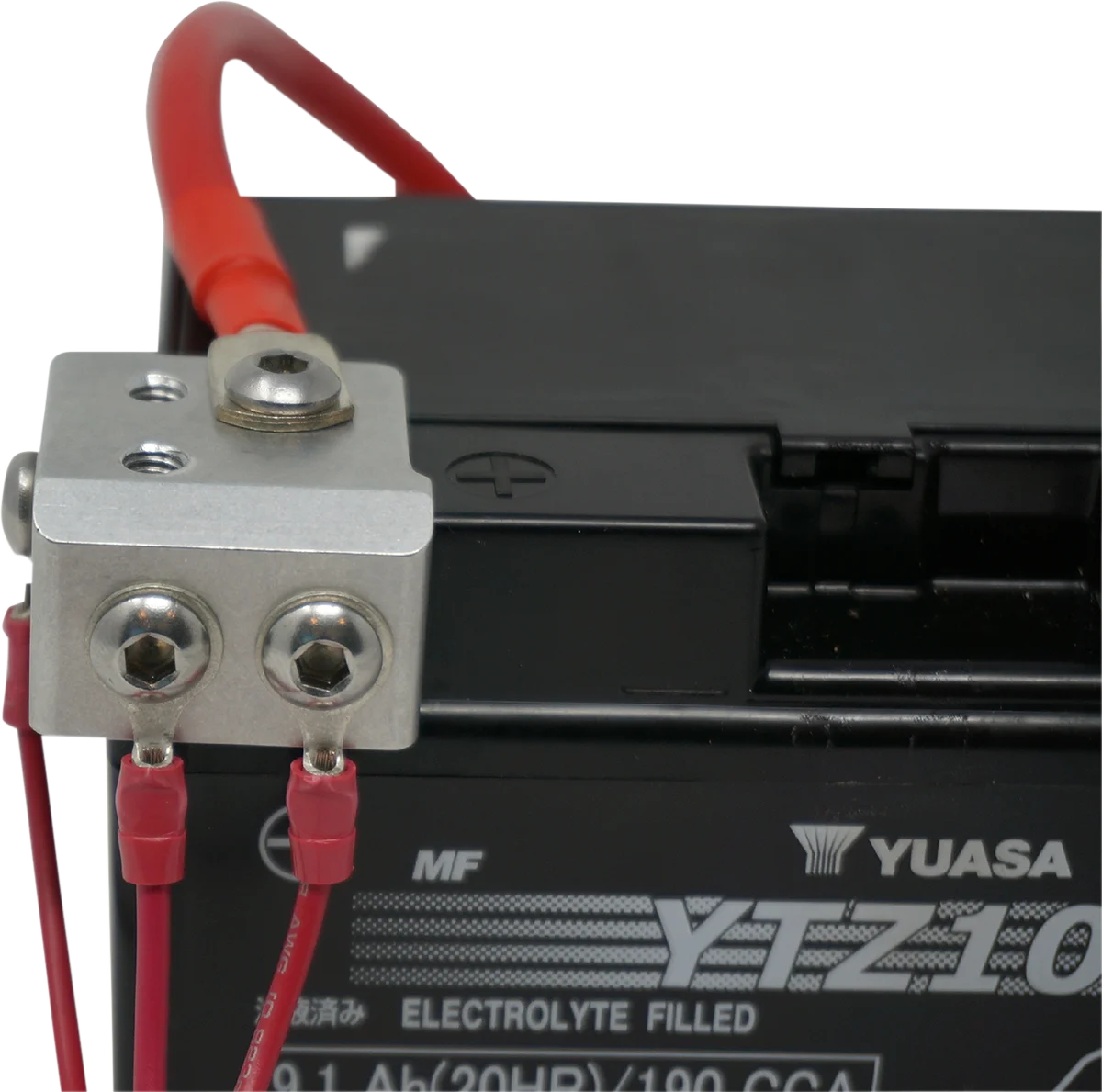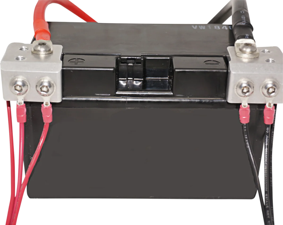 Specifically designed to safely add up to six different accessories requiring 12 volt power onto your battery. Includes both positive and negative terminal blocks. Stacking ring terminals or loose wire ends on battery posts can cause harm to your accessories. Excellent for UTVs with added accessories like stereos, GPS, winch, heaters, etc. Fits any Powersports battery with square bolt-in posts, dry or wet cell. CNC machined from billet aluminum. Made in the U.S.A..