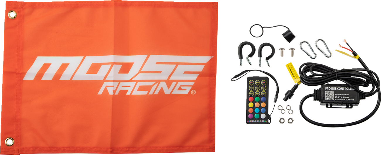 Includes an upgraded Bluetooth controller and a chasing function with 300 different colors and 200 patterns, including flash, strobe and fade-through-colors, stream, cascade and different color combinations from top, bottom and middle; adjust speed/brightness or lock on one color. Bluetooth® control via a free, easy-to-use App. Provides ultimate functionality including music sync, color, pattern and light effect customization, color brightness and speed control, and group LED control. LED lights have UV protection to resist discoloration, maintain clarity and brightness. Bluetooth controller, wiring harness, spring mount, black Whip It flag, flag hardware and install instructions. Operate 12V DC. IP65 dust and water resistant. Made in USA.