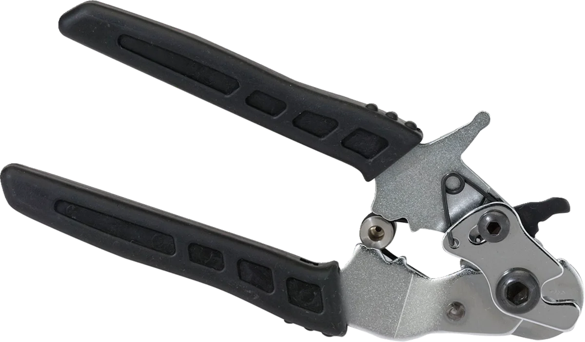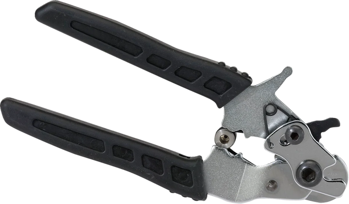 Efficiently cuts cable housing and inner cables. Has multiple functions: from cutting the housing to clamping cable and end cap.