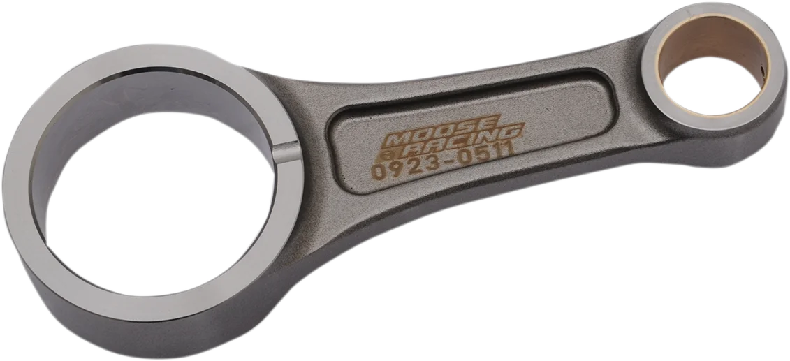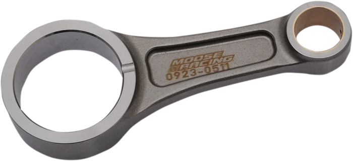 Moose Racing has teamed up with CP-Carrillo to bring you the highest quality, professional connecting rod. 100% machined from an oversized forging ensures proper grain flow and consistency through the manufacturing process. Made from proprietary material containing specific amounts of chrome, nickel, moly and vanadium, for ultimate strength and durability. Engineered to be lighter and stronger than stock rod. Lower reciprocating weight allows for quicker engine response. Small end bushing enables better serviceability and durability. Designed to fit OEM bearing and crank pin. For best results, use with corresponding Moose Racing Piston Kit. Connecting rod only; bearing and pin not included. Made in the U.S.A..