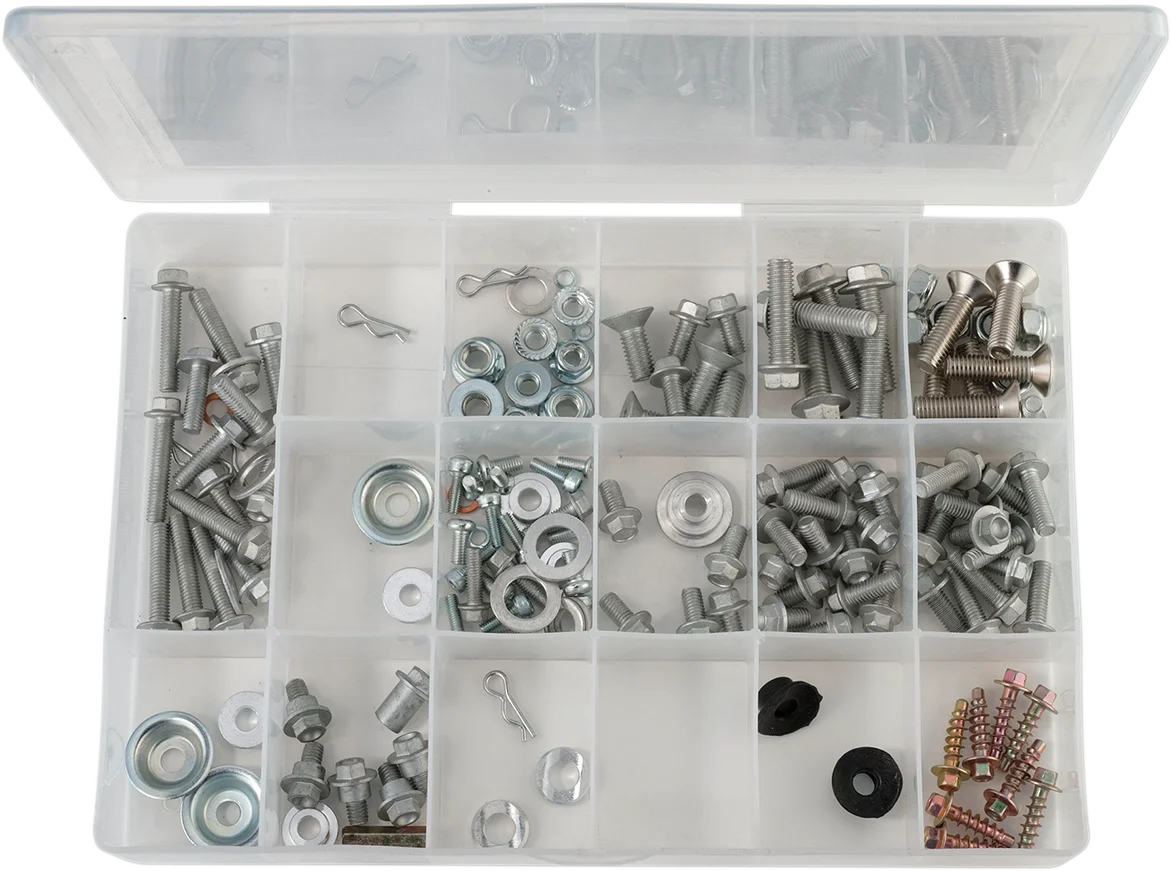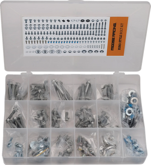 Comprised of 170 pieces including factory-style KTM hardware, bolts, aluminum washers and concave washers, as well as dimpled flange bolts, carb screws, body screws, sprocket bolts, clips, valve stem parts and more.