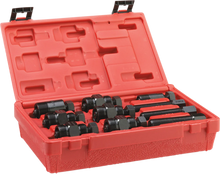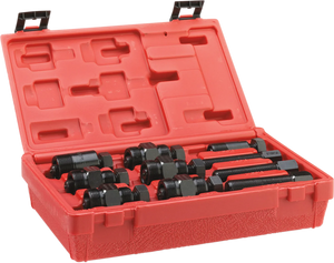 Includes thread pitch and size combinations to fit almost all motorcycles and ATVs: M14 x 1.5 pitch, M16 x 1.5 pitch, M18 x 1.5 pitch, M19 x 1.0 pitch, M20 x 1.0 pitch, M22 x 1.0 pitch, M22 x 1.5 pitch, M24 x 1.0 pitch, M25 x 1.5 pitch, M26 x 1.0 pitch, M26 x 1.5 pitch, M27 x 1.0 pitch, M27 x 1.25 pitch, M28 x 1.0 pitch, M28 x 1.5 pitch. Made from high grade carbon steel. Metric 10-piece puller set. Storage case included.