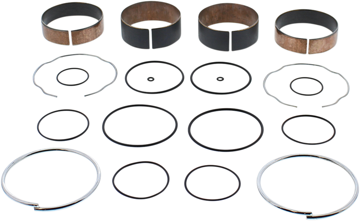 Bushings are dyno-tested to 500,000 strokes with less wear than OEM bushings. Kit includes two slider bushings and two leg bushings. Kit includes all copper washers and O-rings. Kit includes two fork seal snap rings.
