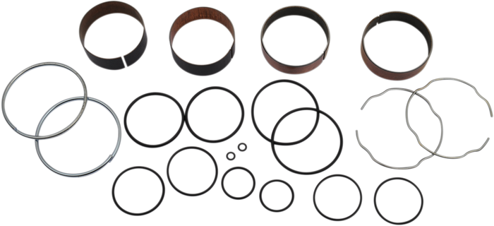 Bushings are dyno-tested to 500,000 strokes with less wear than OEM bushings. Kit includes two slider bushings and two leg bushings. Kit includes all copper washers and O-rings. Kit includes two fork seal snap rings.