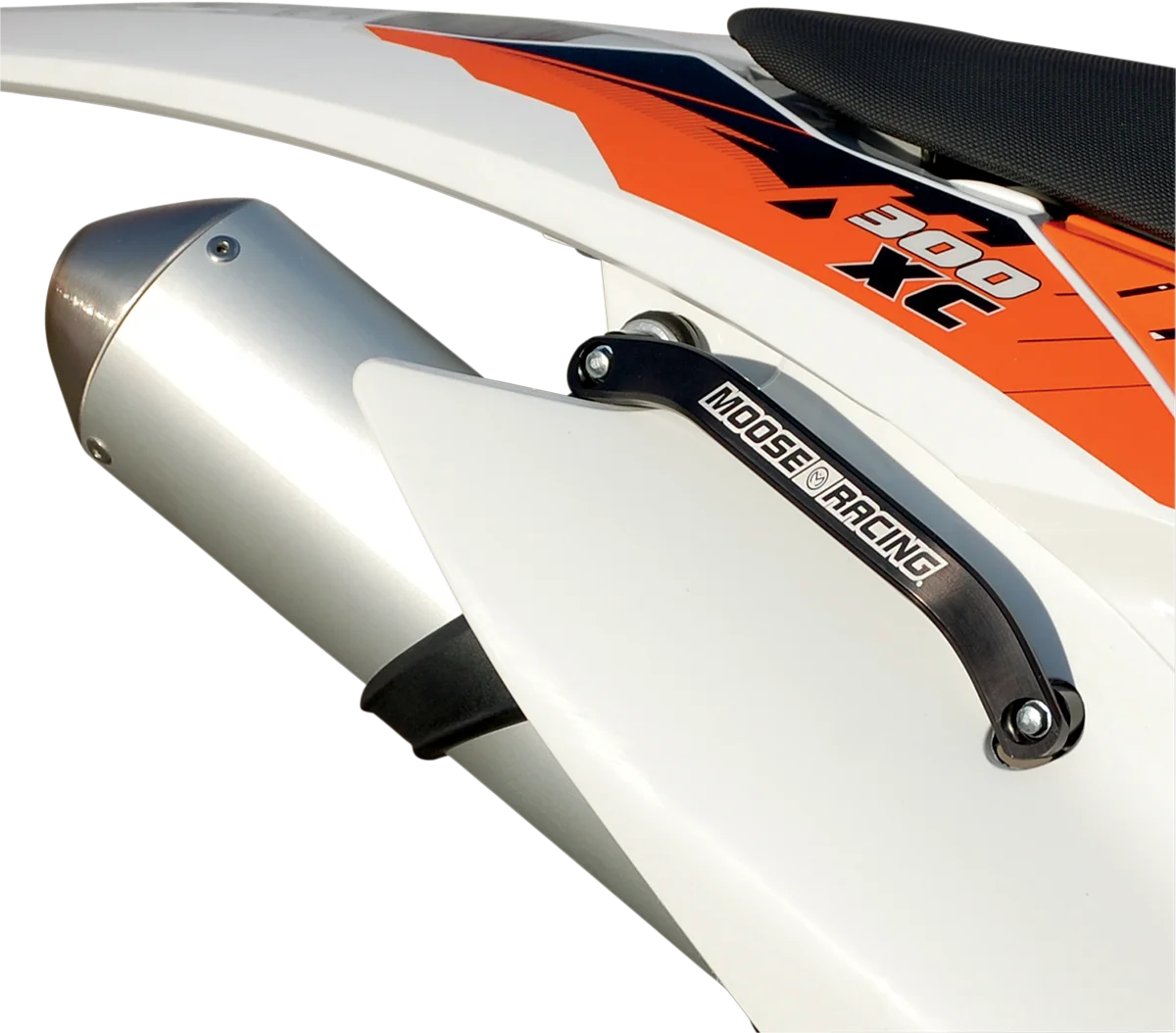 A place to grab for lifting your bike on a stand or out of the mud. Made of 6061 T-6 aluminum. Anodized black with laser-etched Moose Racing logo. Attaches with longer bolts on silencer mounts through CNC-machined aluminum spacers. Made in the U.S.A..