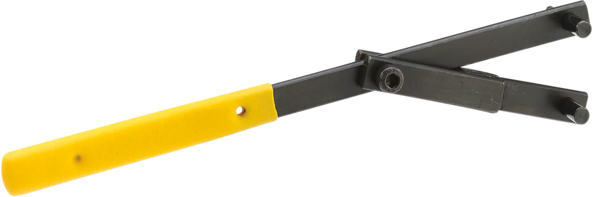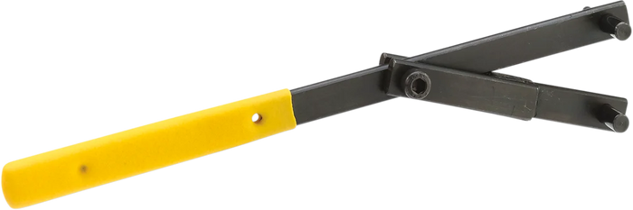 This holding tool can be a big help when removing pulleys, gears or sprockets. Two secure pins of two different sizes allow a fit for most applications. Universal tool with a wide range of adjustability.