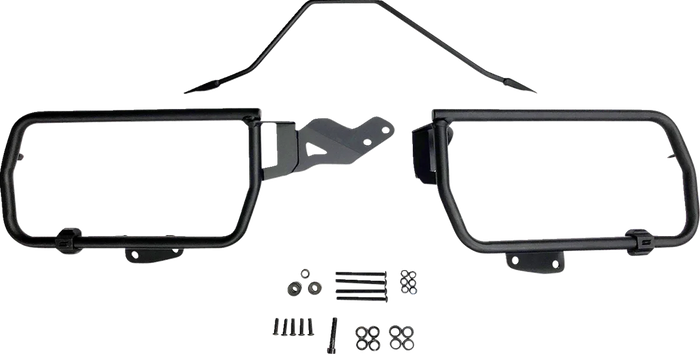 Kenai Mount kits are made from 3/4" (20 mm) tubing and powder coated to provide corrosion resistant mounting surface. Mount kits use a rear crossbar design to provide maximum rigidity and helps resist damage in the case of the bike falling over on the trail. All mounting kits are designed specifically with brackets and mounting points to assure correct fitment to motorcycle. All kits come with complete hardware and instructions for assembly. Keep in mind that you need to use our 36Liter case on the exhaust side to keep the bike evenly balanced..