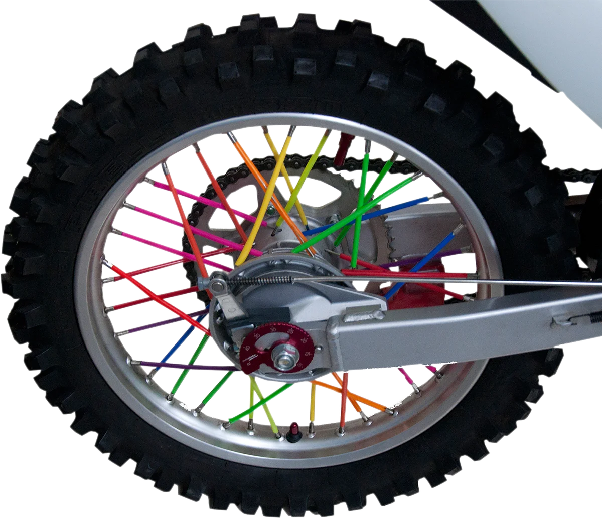 Inexpensive way to change the look of your motorcycle. Made of polyurethane plastic with slit for easy install. 80 spoke skins included to complete both wheels. Fit securely around your spokes. Fit 18” to 21” sized wheels. Trimming may be required.