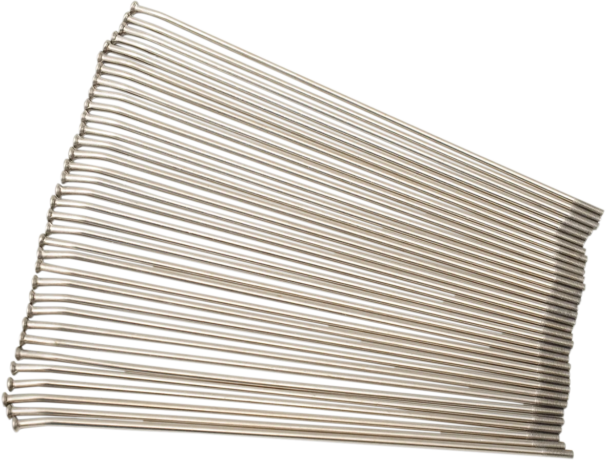 Precision threads match perfectly with MX1 Spoke Nipples (sold separately). Interchangeable with Moose Racing and stock rims and hubs. Strong T302H stainless steel for maximum tensile strength. Spokes are polished to maintain surface strength. Individual spokes come with silver nipple. Must use with MX1 Spoke Nipples (see related products).