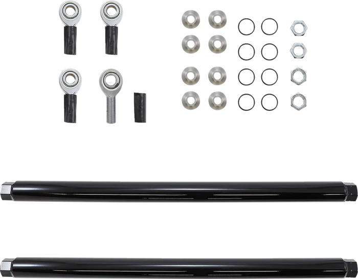 TIG welded. Durable powder coat finish. Fully adjustable to set camber and toe. Heat treated 5/8" heim joints rated to 17,900 lbs. 1.25" Dom tubing with .125" thickness. 416 stainless steel misalignment spacers. HD versions are constructed from massive 1-1/2" seamless dom tubing you will never have to worry about bending or breaking another radium arm again.