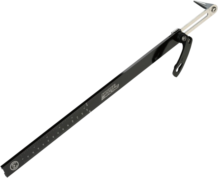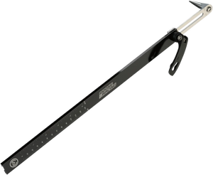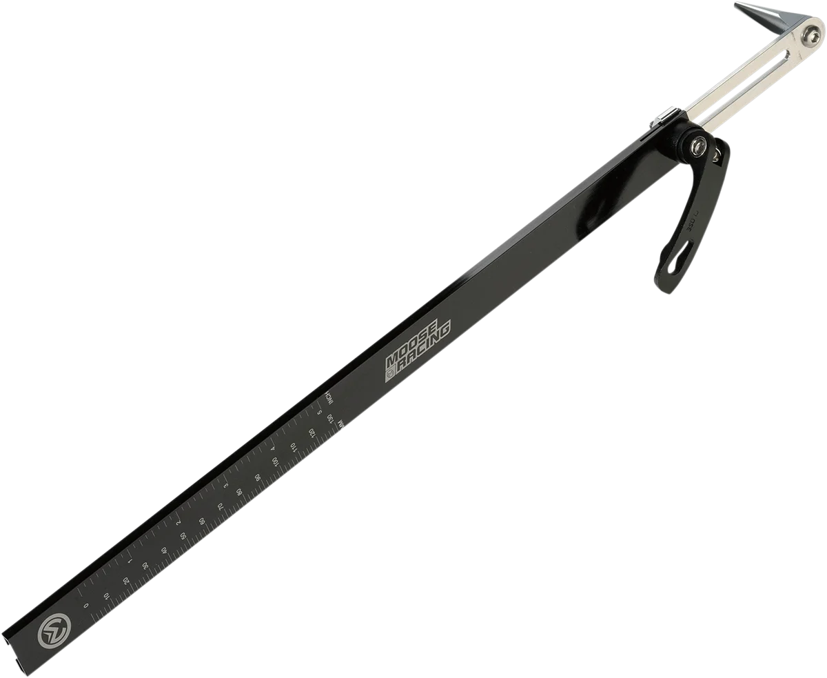 Fully adjustable scale and tapered axle pin to fit mini- and big-bike axles. Telescoping design for easy storage in tool boxes. Quick-release setscrew for convenient tightening. Standard and metric measurements.