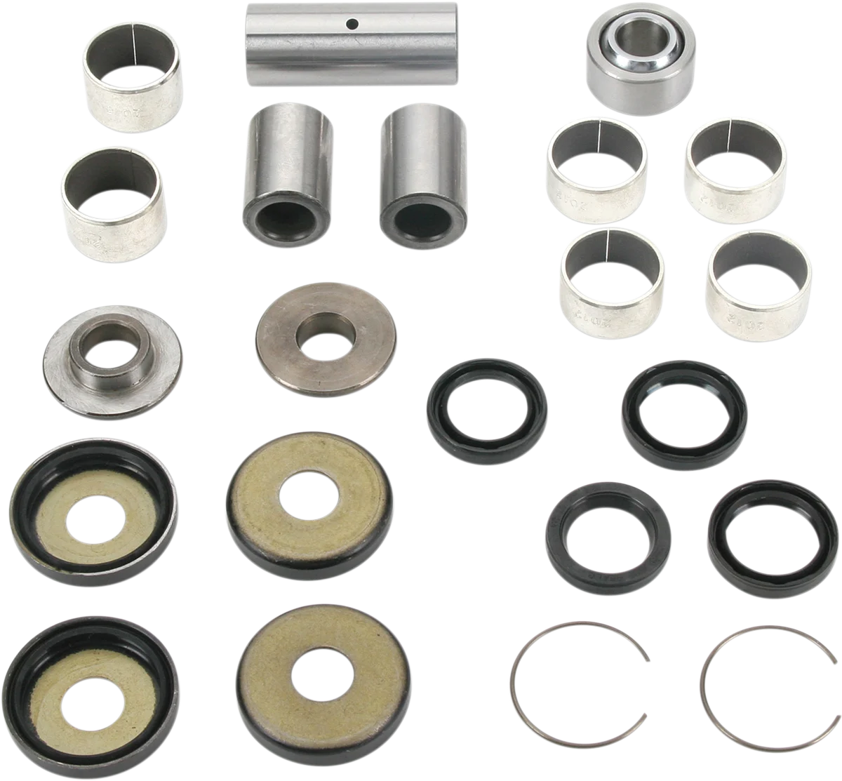 Kit includes all of the parts (including the lower shock bearing) to rebuild the suspension linkage. Constructed from OEM-quality components at a fraction of the cost. Each kit includes linkage bearings, shafts, seals and spacers and lower shock bearings.