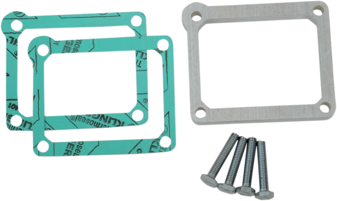 Simple but effective way to shift the torque curve to favor the low-end to mid-range band of the rev range. CNC-machined, eliminating interference problems when installing; includes gaskets and bolts. Insert spacer between cylinder and reed valve. Made in the USA.