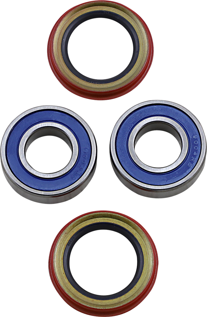 Bearing seals are double-lipped rubber that provides superior exclusion of water, dirt and sand with improved grease retention. Steel garter spring guarantees constant pressure on the axle shaft, extending the life of the seal. Wheel seals are type TC nitrile elastomer, specifically designed to keep out water, dirt and sand. Packed with Chevron SR1-2 high-performance grease with rust and oxidation inhibitors. Seals have a rubber-coated outside diameter that creates an optimum seal at the hub. Kit includes all required bearings and seals to refit a wheel. High-speed, low-drag bearings are EMQ quality. Kits are per wheel.. For MX1 hubs..