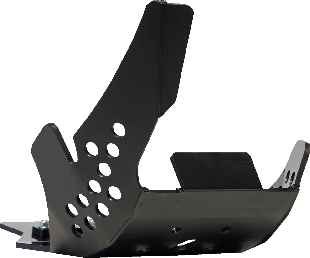 Made of high density polyethylene plastic 8 mm thick. Offers a full protection to the cases, the frame until the footpegs, the linkage and the water pump. 30-40% lighter than its equivalent in aluminum. Does not generate vibrations and does not save impacts..