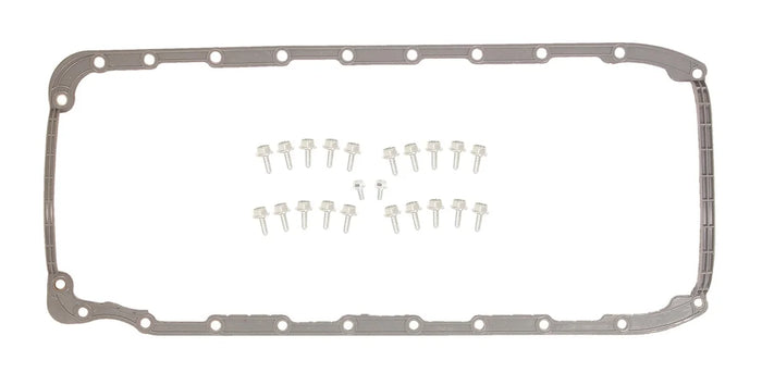 | Description_MKT | This high quality 1-piece molded rubber oil pan gasket can help stop those annoying leaks. This gasket is for original equipment replacement, high performance drag race and oval track use. Includes mounting bolts. |