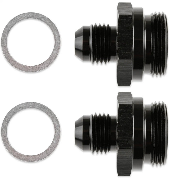 Mr Gasket Mr. Gasket -8 AN, 7/8-20 Carburetor Fittings - Black with Gaskets (2) 491948