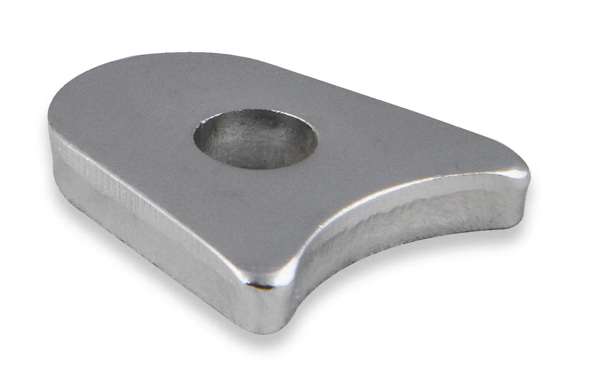 | Description_MKT | Chrome plated steel. Includes hold-down bolt or stud. Holds the distributor in place for accurate timing. Serrated bottom prevents the distributor from turning. |