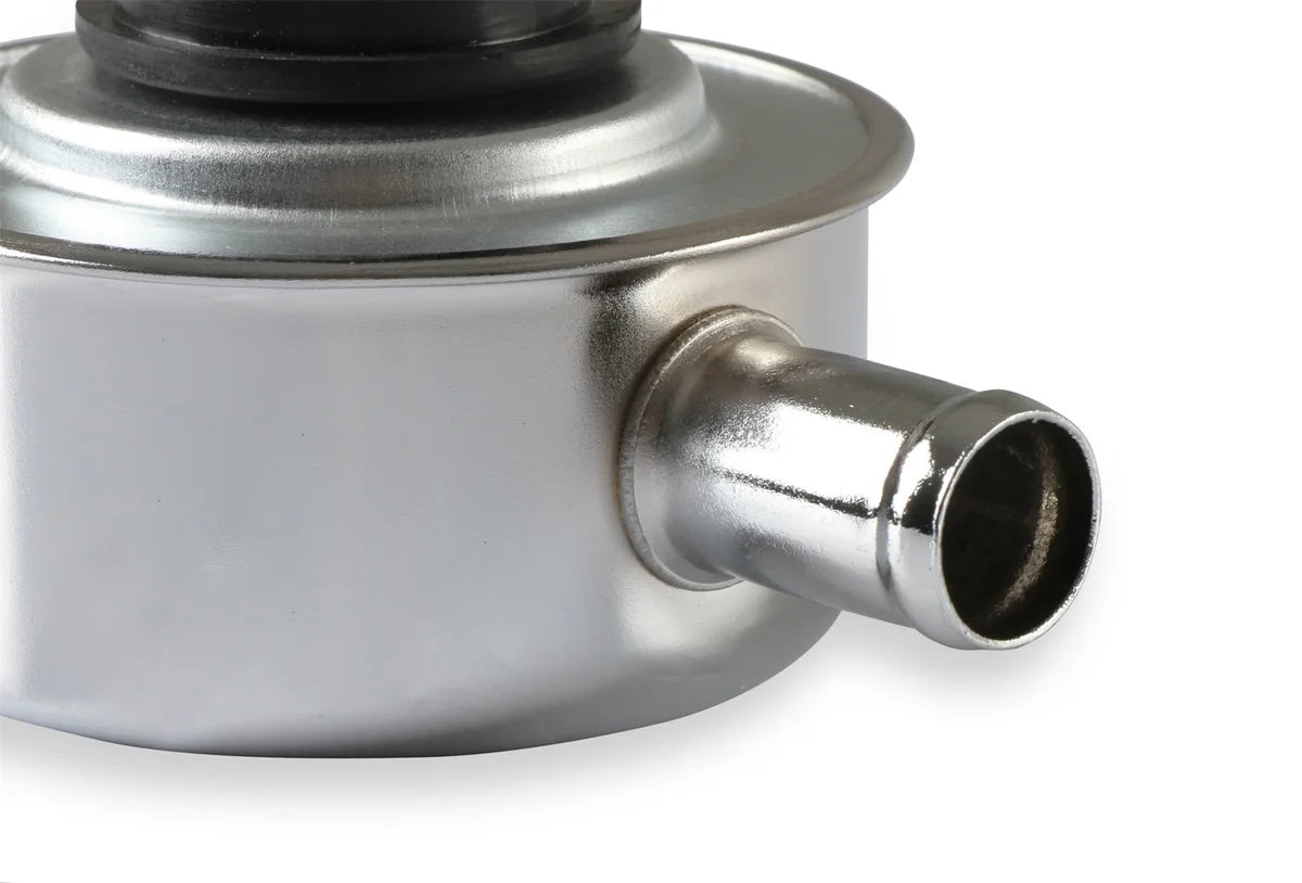 Description_MKT | Chrome plated breather cap is ideal for race car vacuum balance systems, as well as original equipment applications with positive crankcase ventilation (PCV). |