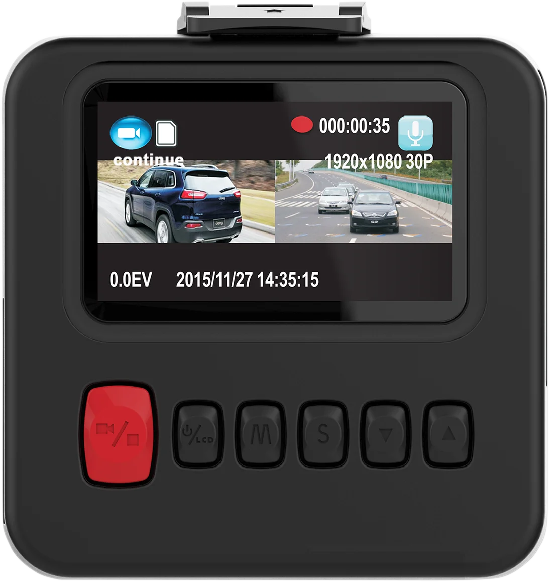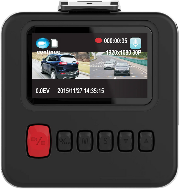 Universal for motorcycle, UTV, and ATV. Compact size. Uninterrupted recording DVR function (1,5,10,or 30 min selectable). 2 cameras record simultaneously. 1080p resolution at 30 FPS, 720p at 60 FPS. Hardwired. Waterproof and Dustproof - IP66 Rated. Comes with Flush Mount Kit and Bar Mounting Kit. UV resistant construction. 4-1/2"H x 3-3/4"W x 1"D.