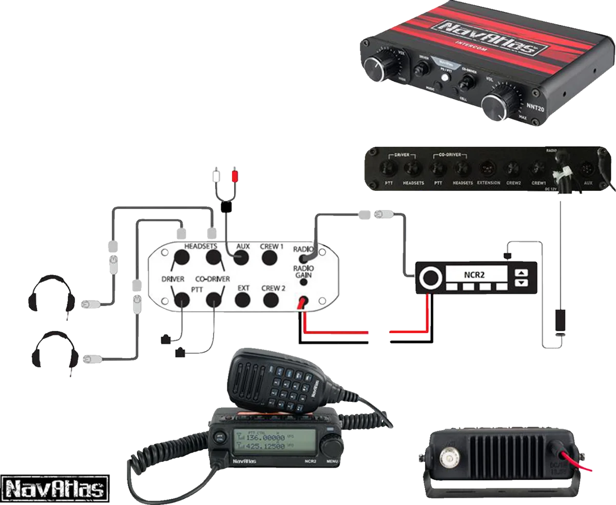 Kit includes: 1 NNT20 Intercom, 1 Pair NO303 Over-the-Head (Stereo) Headsets, 2 HCF4 (Front) 4’ coil cables connecting the headsets to the HEC10 extension cables and 2 HEC10 (Front) 10’ extension cables connecting the intercom to the HCF4 coil cables to headsets. Intercom. High fidelity stereo sound for smart phone or other music source. VOX (Voice Activation). Separate front inputs for music and smartphones. Two front and two rear headphone inputs. RF shield housing. Compatible with car-to-car radio or handheld radio. Over-the-Head Headset. Easy to use and reach volume knob and Push to Talk (PTT) Button. Poly-coated voice activated boom mic. Large noise cancelling comfortable ear seats. Soft pillow type over-the-head cushion.