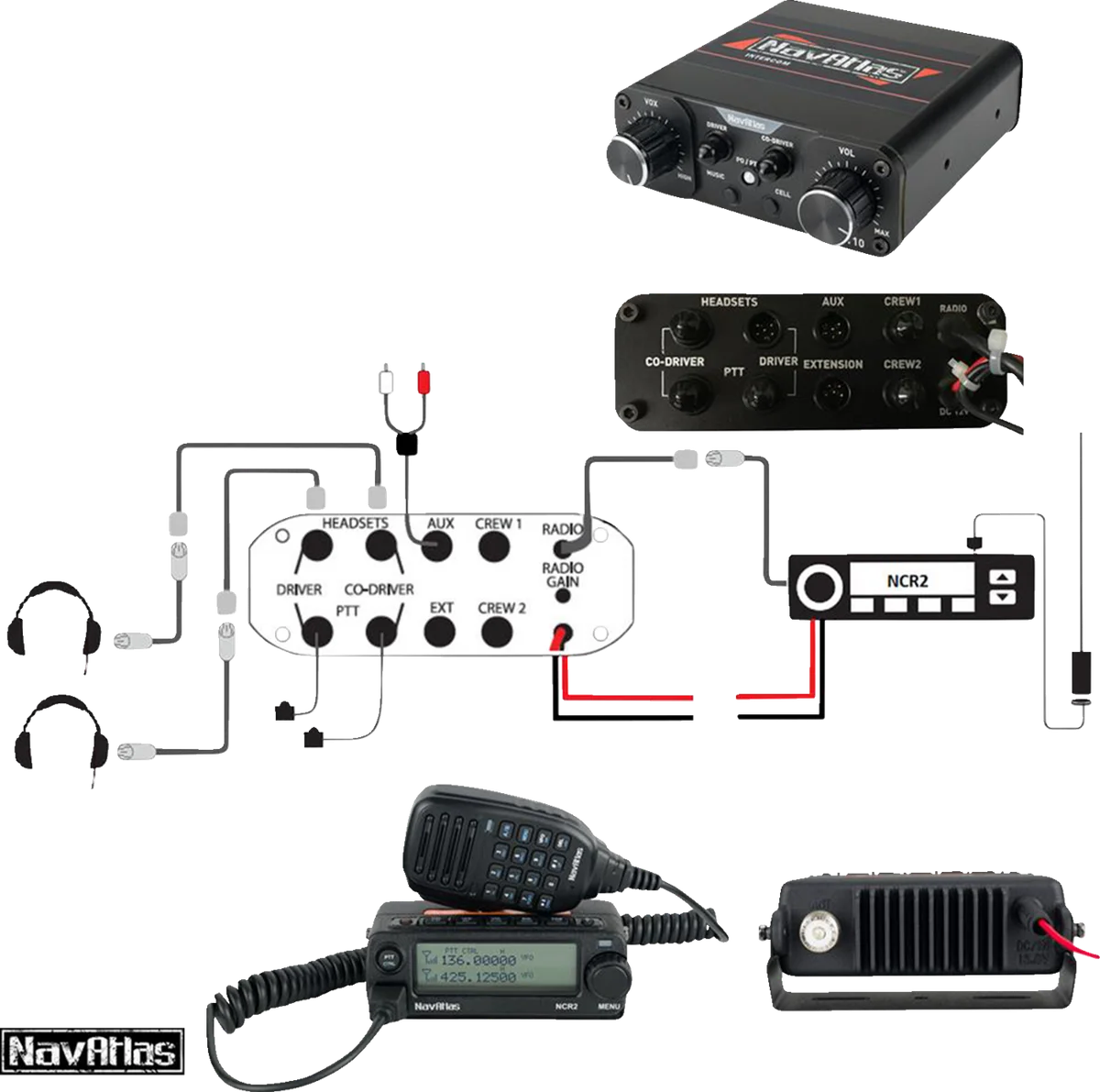 NavAtlas Intercom/Radio and Headset Kit - 2-Seat - Black NIRBHBK2