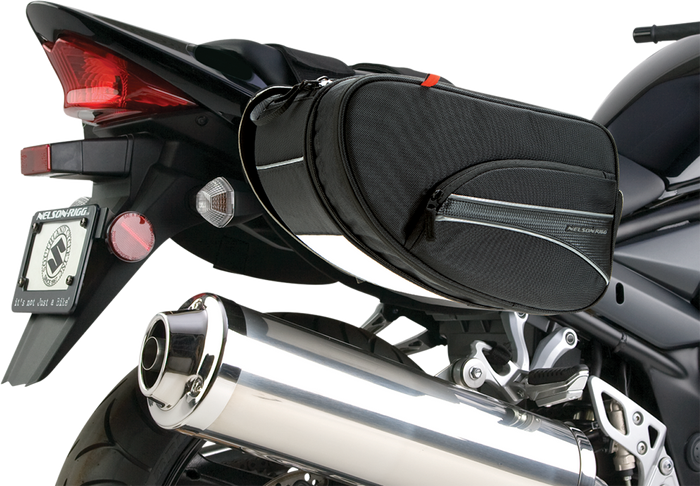 Compact size is compatible with all types of bikes with upswept mufflers. UV-treated Tri-Max® ballistic nylon with reflective piping. Easy access top loading main compartment is lined to hold its shape. Mounts securely with hook-and-loop straps and quick release buckles. Heat-resistant under panels. Convenient outer pockets for smaller items. Fully expandable for more space when needed. Protective pad prevents slipping or marking bike. Each saddlebag holds approximately 13.27 Liters (19.91 Liters when expanded).