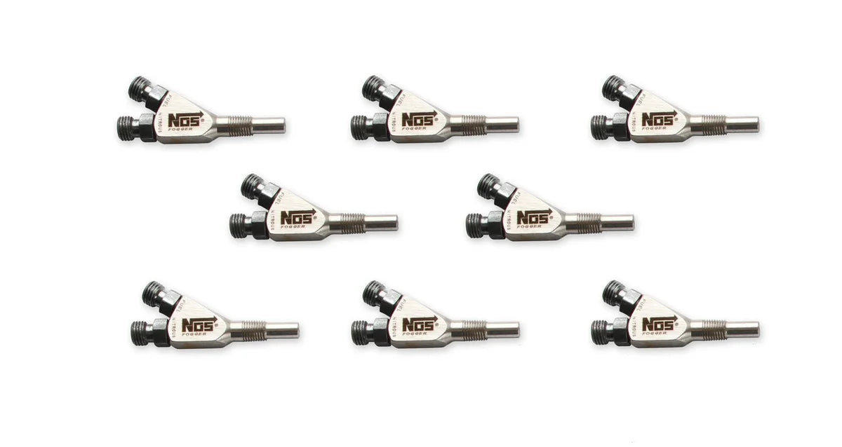 | Description_MKT | 8-Pack Annular Discharge Fogger Nozzle (Stainless Steel) - NOS has done it again! The stainless steel Annular Discharge nozzle is the most effective design in the world, The Annular Discharge Fogger® nozzle's secret lies in specially engineered annular orifices which mix the nitrous and fuel in a radial pattern outside the nozzle tip to provide superior atomization of supplemental fuel as well as more even fuel distribution within the nitrous flow. This new nozzle design produces an even tighter "cone" of nitrous oxide/fuel mixture and provides more precise control of nitrous/fuel ratios throughout the jetting spectrum. It is important to note that the Annular Discharge nozzle shoots out straight, and as such is NOT a direct replacement for the standard Fogger™ or Fogger® 2 nozzles. It is designed to be fitted to the manifold at a very tight angle (much closer to 30° than the normal 90° -but entirely dependent on runner design). Because of the way the Annular Discharge nozzle can be installed, it does not protrude into the intake tract and disrupt flow. The nozzles are made of stainless steel for superior durability. |