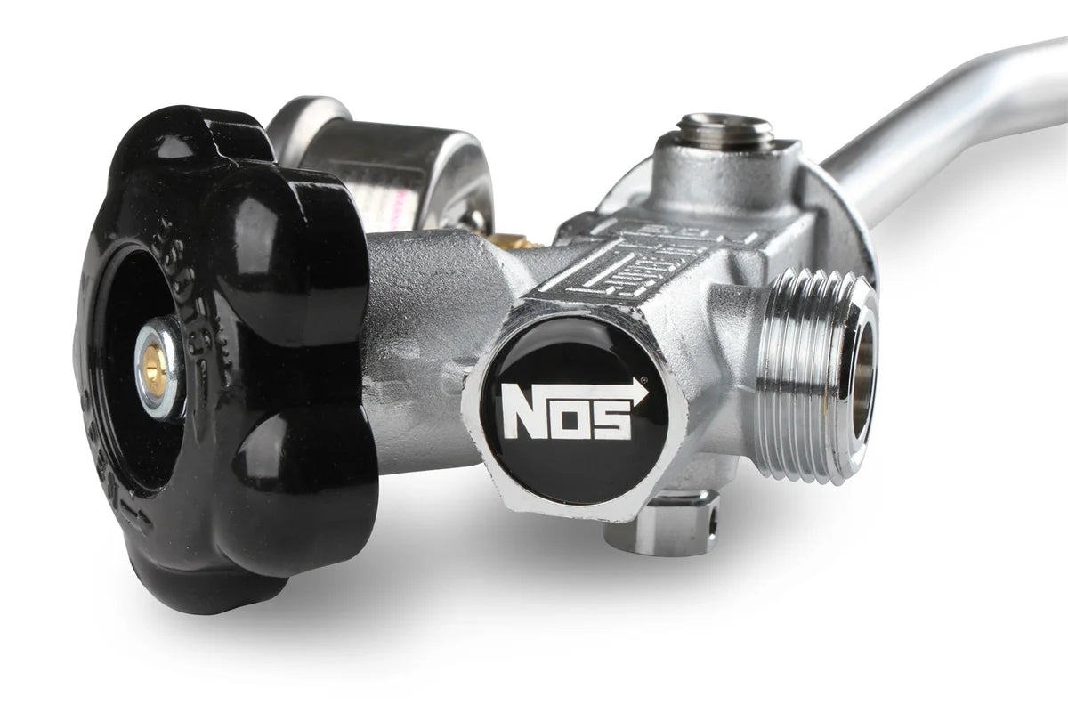 NOS/Nitrous Oxide System NOS 10 lb. Bottle Super Hi-Flow Valve Assembly with Siphon Tube and Black Gauge 16137ABNOS
