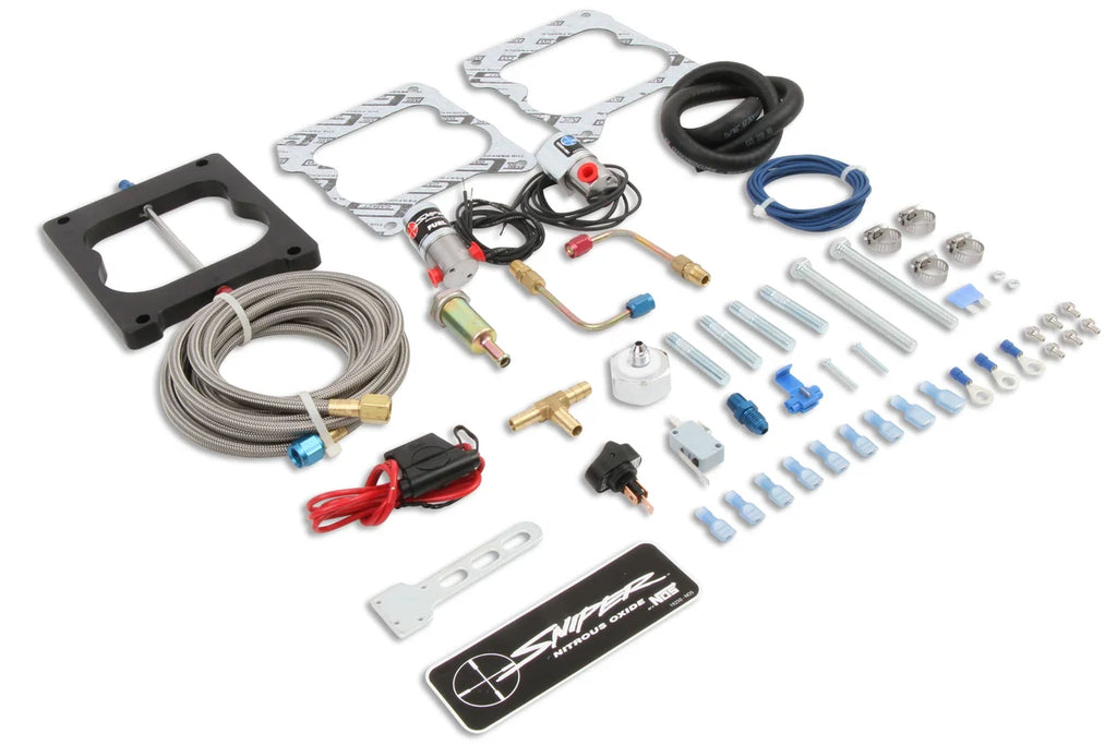 | Description_MKT | The Sniper is a fully adjustable system that is designed to provide from 100-150 extra horsepower in popular 4 bbl square bore or spread bore applications. However, you can get more than you expected; In dyno tests conducted by Chevy High Performance magazine the Sniper system produced an extra 163 horsepower when installed on a 355 CID small block Chevy with torque increased by an astounding 195 lb/ft. |