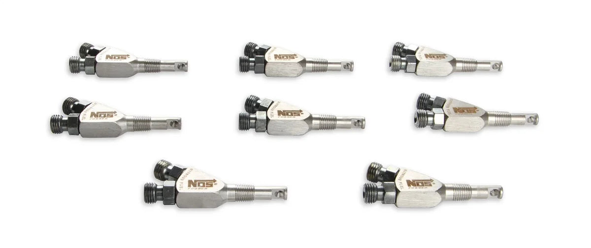 | Description_MKT | 8-Pack -Soft Plume 90° Nozzle (Stainless Steel) - Ideally suited for many manifold designs including E.F.I., the Soft Plume 90° nozzle effectively disperses the fuel/nitrous mixture in an atomization pattern that is second to none and particularly beneficial to smaller displacement engines. It is very popular in stock applications. The Soft Plume 90° nozzle is made of rugged stainless steel and has a record of outstanding reliability. |