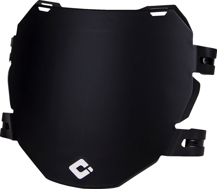 Curved design allows rear cables to be tucked out of view behind plate. Low profile design allows full field of vision. Easy installation / removal using zip-ties (Zip-Ties not included). Durable but flexible fiber reinforced polymer construction allows plate to easily flex to fit onto fork stantion tubes where pre configured zip-tie groves make installation simple.