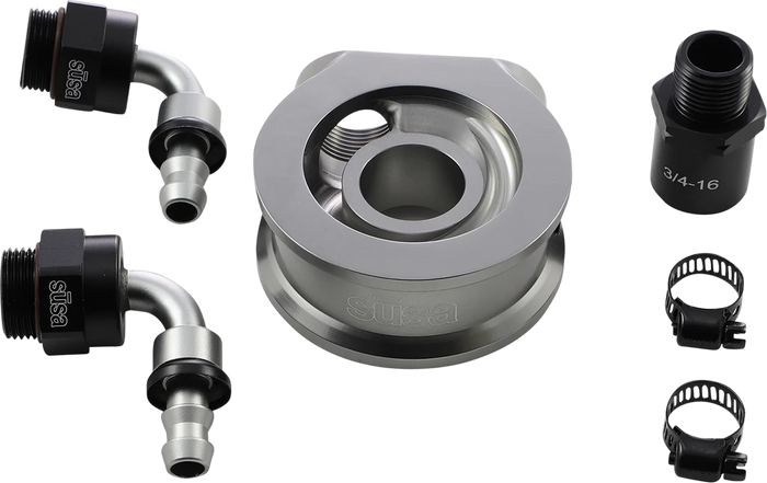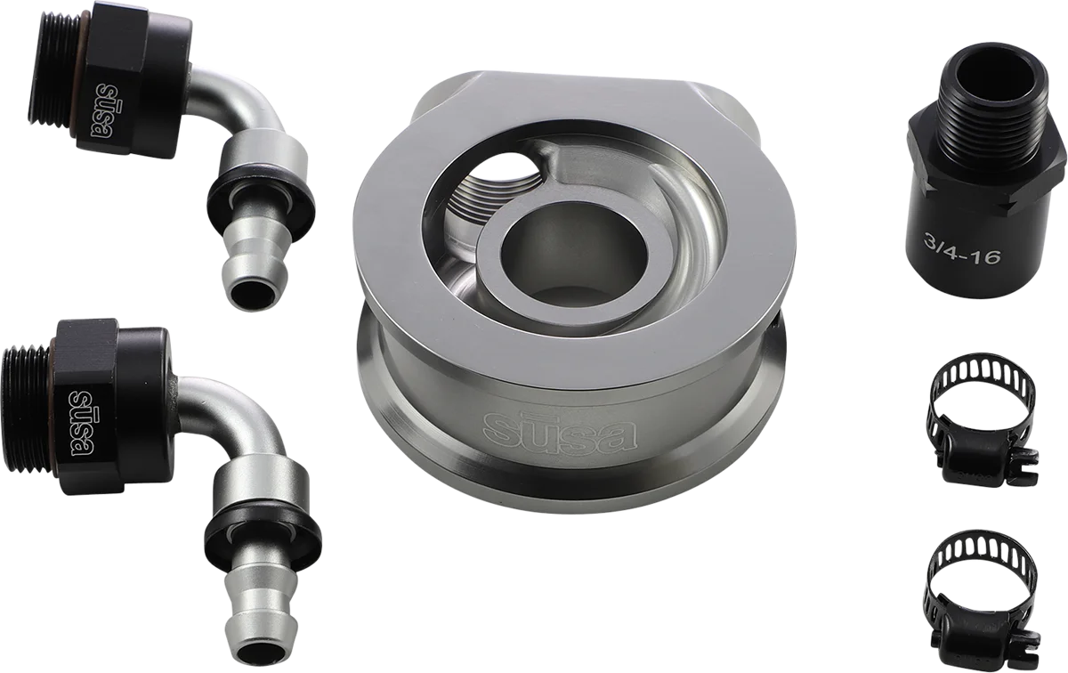 Machined with sweeping internal flow passages for optimal flow characteristics from billet aluminum and anodized with a durable titanium gunmetal finish. Installs between the oil filter landing and the oil filter for easy access to the oil supply to install an oil cooler. Designed with HyperFlow Technology, an engineered balance between performance and flow. NPT port & plug for optional installation of sending unit or switch. Features ProLine swivel fittings for easy oil plumbing. Flows oil to an oil cooler full-time with no oil bypass. Built for reliable performance and easy installation.