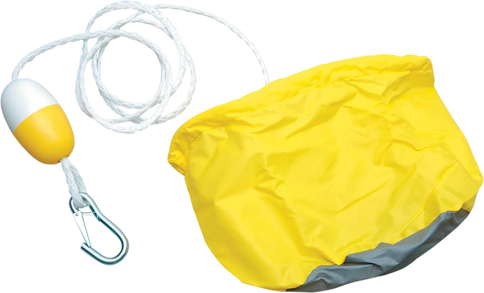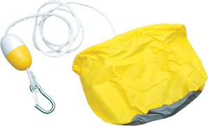 Fill with sand, rocks or any other weighty substance (up to 55 lb.), and you're ready to anchor your craft. Great for jet skis, inflatable boats, canoes and other small watercraft. Brass grommet drain hole on bottom for easy drainage. Constructed of heavy-duty waterproof nylon material. Heavy-duty galvanized snap hook. 3" x 5" color-matched rope float. 10' of 3/8" polypropylene rope.