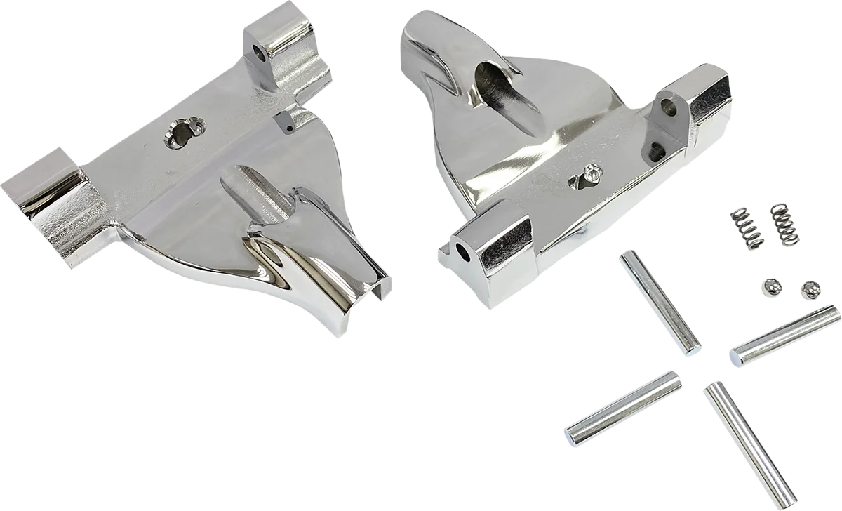 Designed to replace standard passenger footpegs. Adds style and comfort for your passenger. Includes all required hardware. Accept Drag passenger floorboards Part # 1621-0463 or OEM H-D passenger floorboards (sold separately). Floorboard mounts and brackets must be purchased separately.