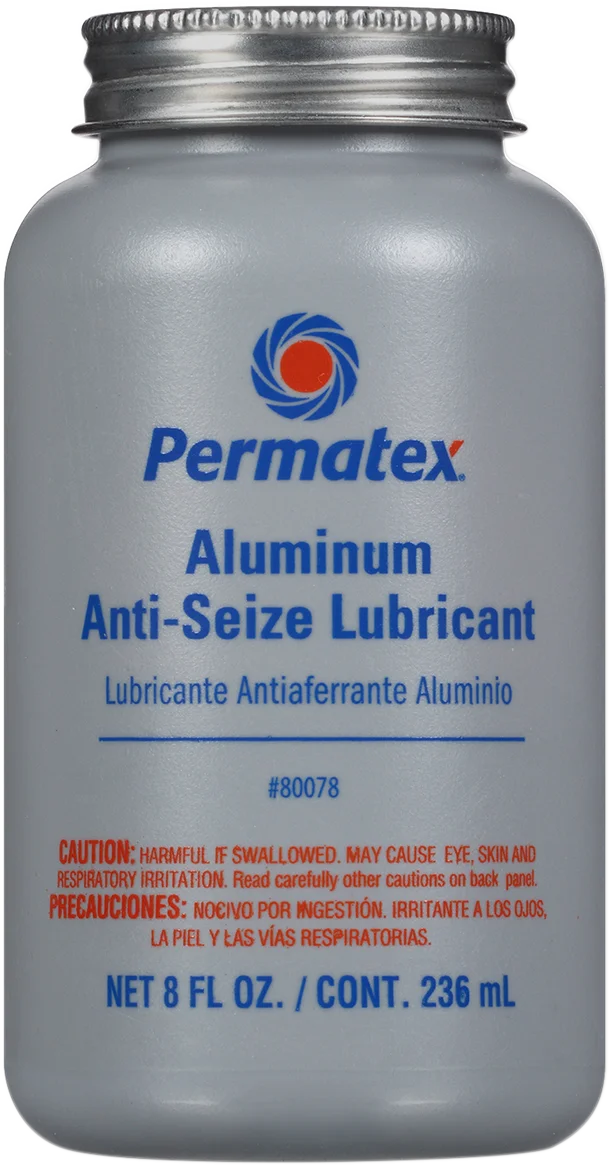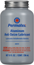A highly-refined blend of aluminum, copper and graphite lubricants. Use during assembly to prevent galling, corrosion and seizing due to weathering or chemicals. Easy to disassemble. Temperature range: -60°F to 1600°F (-51°C to 871°C). Salt, corrosion and moisture resistant. Available in 8-ounce brush-top bottles, 12 per case.