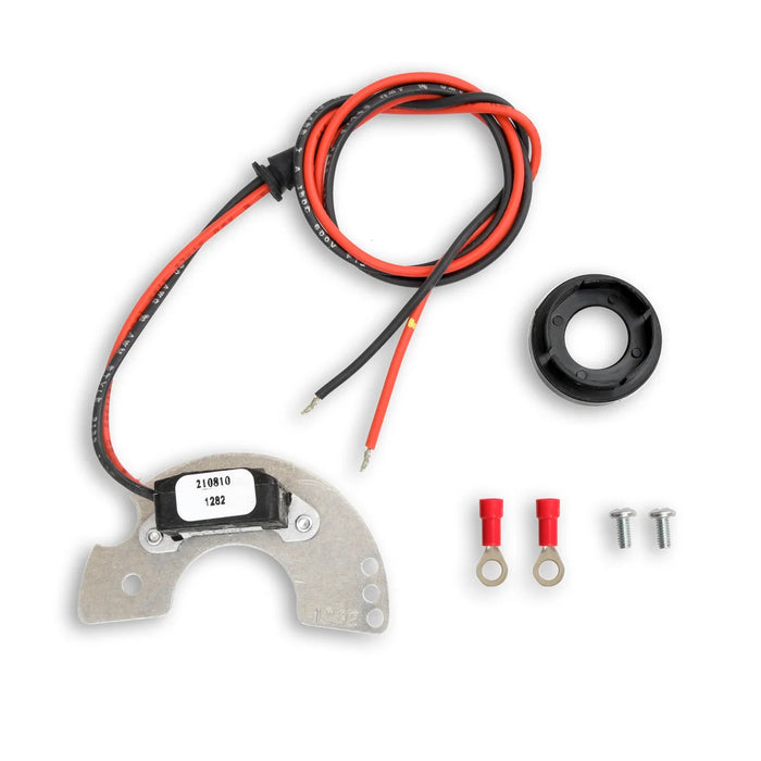 | Description_ASC | Ignitor Electronic Ignition Conversion Kits have proven themselves in applications ranging from race cars to tractors. It is the number one Electronic Ignition Conversion Kit to replace original mechanical points. A Pertronix Points Conversion kit allows you to run a stock distributor while improving the reliability and performance of your ignition system. The Pertronix Ignitor kits simply bolt to the distributor in place of the points assembly and provides a much more accurate trigger signal. This improves the timing accuracy and prevents ‘points bounce’ at higher rpm. The electronic technology also improves the dwell control to improve the spark output of the coil resulting in a hotter spark at the spark plug. With this dependable, self-contained, maintenance free electronic ignition system you'll never replace your points again. |