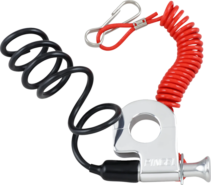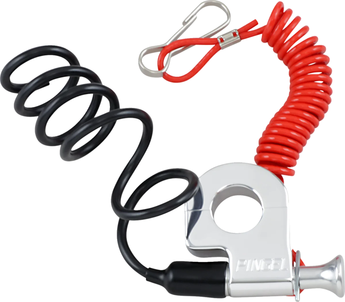 Handlebar-mount tether kill switch protects your expensive motor from over-revving. Complete with a clipped tether cord that extends to 50". Optional tether cord is easy to attach and offers a hook-and-loop adjustable wristband that will fit over gloves. Two-piece handlebar mount clamps around handlebars; available for 7/8" or 11/8" handlebars. Made from billet aluminum with water-resistant, stainless steel internal components. Made in the U.S.A..