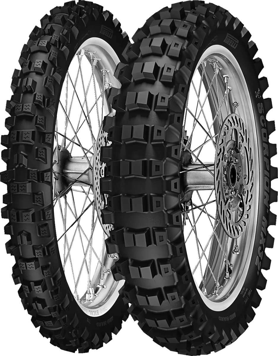 Engineered to provide outstanding performance for professional riders in the World FIM Motocross, the AMA Motocross and Supercross championships and enthusiastic riders of all capabilities. Provides a high-level of dynamic performance by maximizing cornering grip and traction while providing remarkable durability and resistance against cuts and tearing. Dense knob layout provides a large and stable contact patch for improved cornering grip, traction and stability. Robust compound promotes the transfer of power to the ground and prevents overheating. For mid-hard to hard terrain.. Replaces the MX32 Pro..
